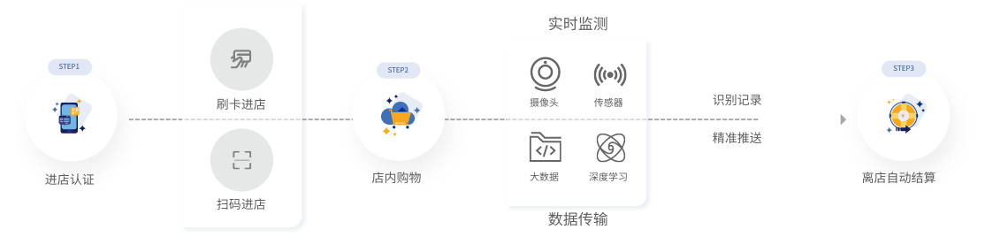 基于动态视觉识别和高阶动作语义识别技术,精准追踪购物行为,并在消费者离开后自动生成账单。