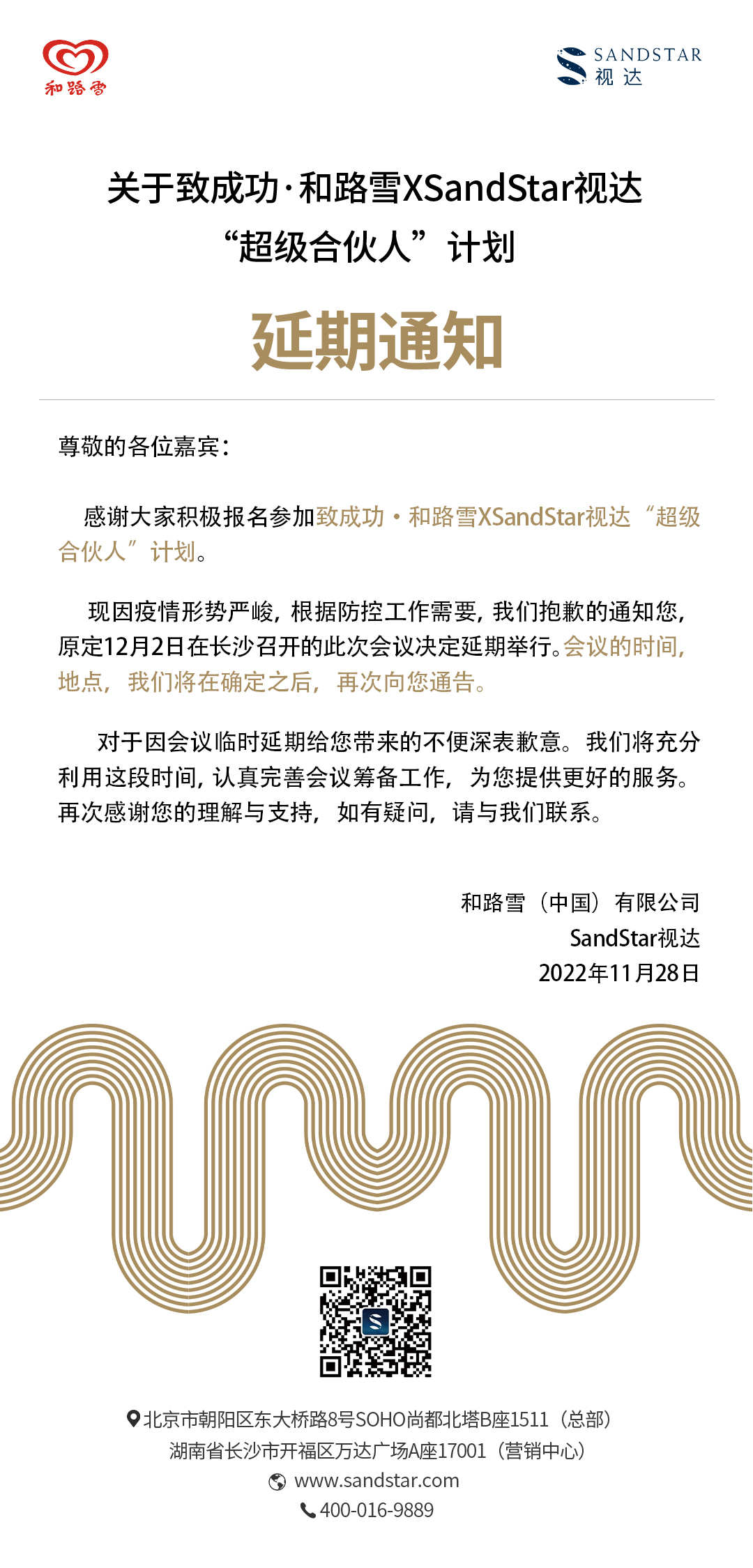 关于致成功—和路雪XSandStar视达“超级合伙人计划”延期通知